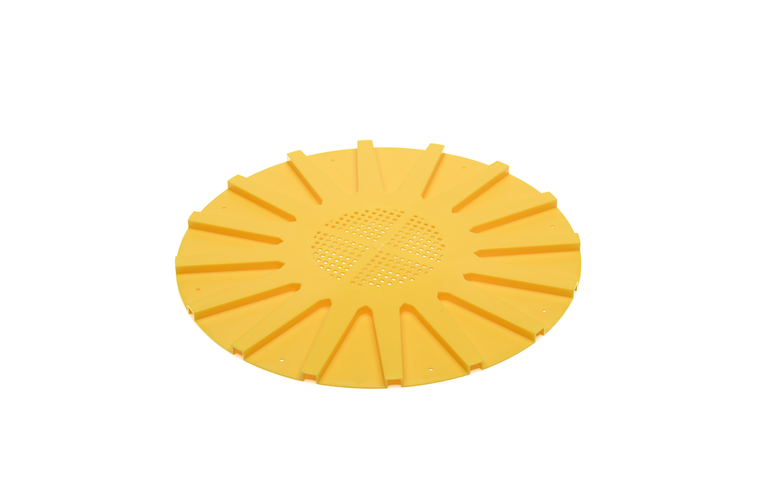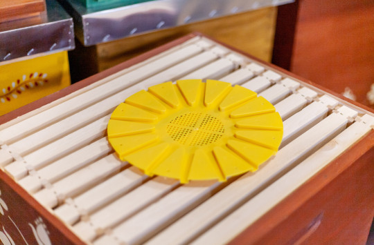 Die Funktionsweise der Bienenflucht ist, dass Sie zwischen die volle Zarge mit vollen Honigwaben und die leere Zarge unter ihr die Bienenflucht legen. Alle Bienen aus der Beute gehen in bestimmter Zeit auf einen Durchflug. Sie gehen durch die engen Öffnungen der Bienenflucht aus dem Honigraum in die leere Zarge unter ihm, aber in den Honigraum zurück können sie durch die engen Öffnungen nicht mehr kommen. So bleiben sie in der leeren Zarge. Also bleibt Ihnen am nächsten Tag ein leerer Honigraum, aus dem Sie einfach die Rähmchen entnehmen. Sie müssen die Bienen nicht abkehren.