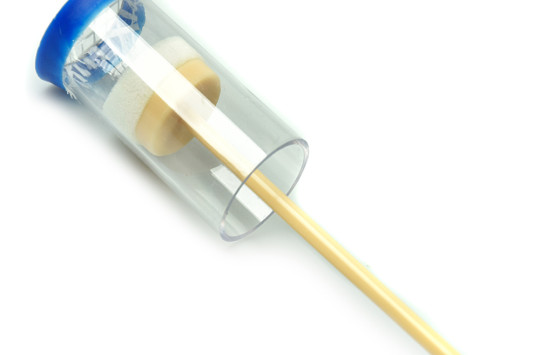 Das Zeichenrohr aus Kunststoff ist zum Abfangen von Königinnen zum Zweck des Markierens mit der Farbe bestimmt. Das Ende des Kolbens ist mit weichem Schaumstoff überzogen, damit er die Königin nicht verletzt. Wenn der Kolben heruntergedrückt wird, wird die Königin auf das Netz gedrückt, wo sie dann markiert werden kann.