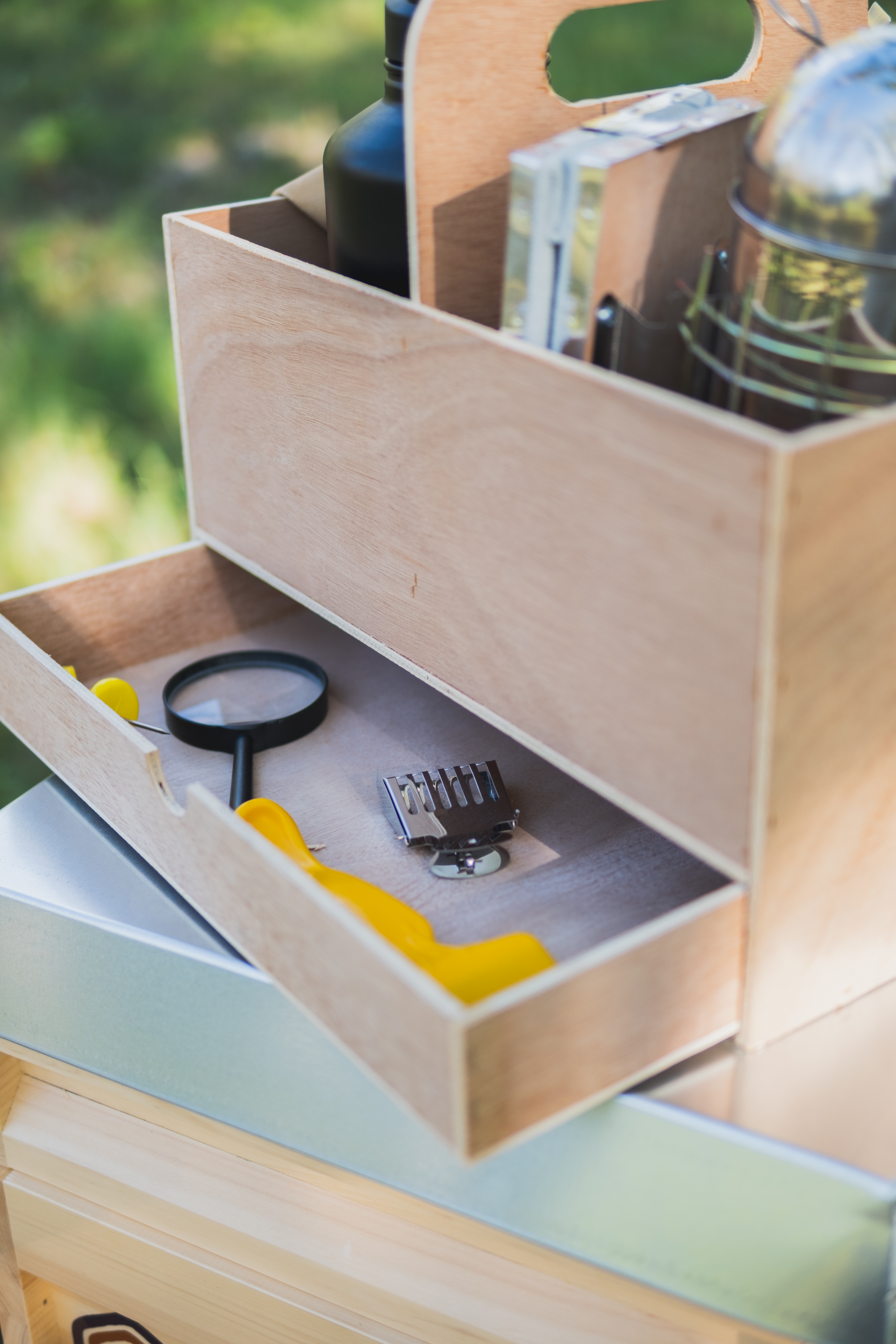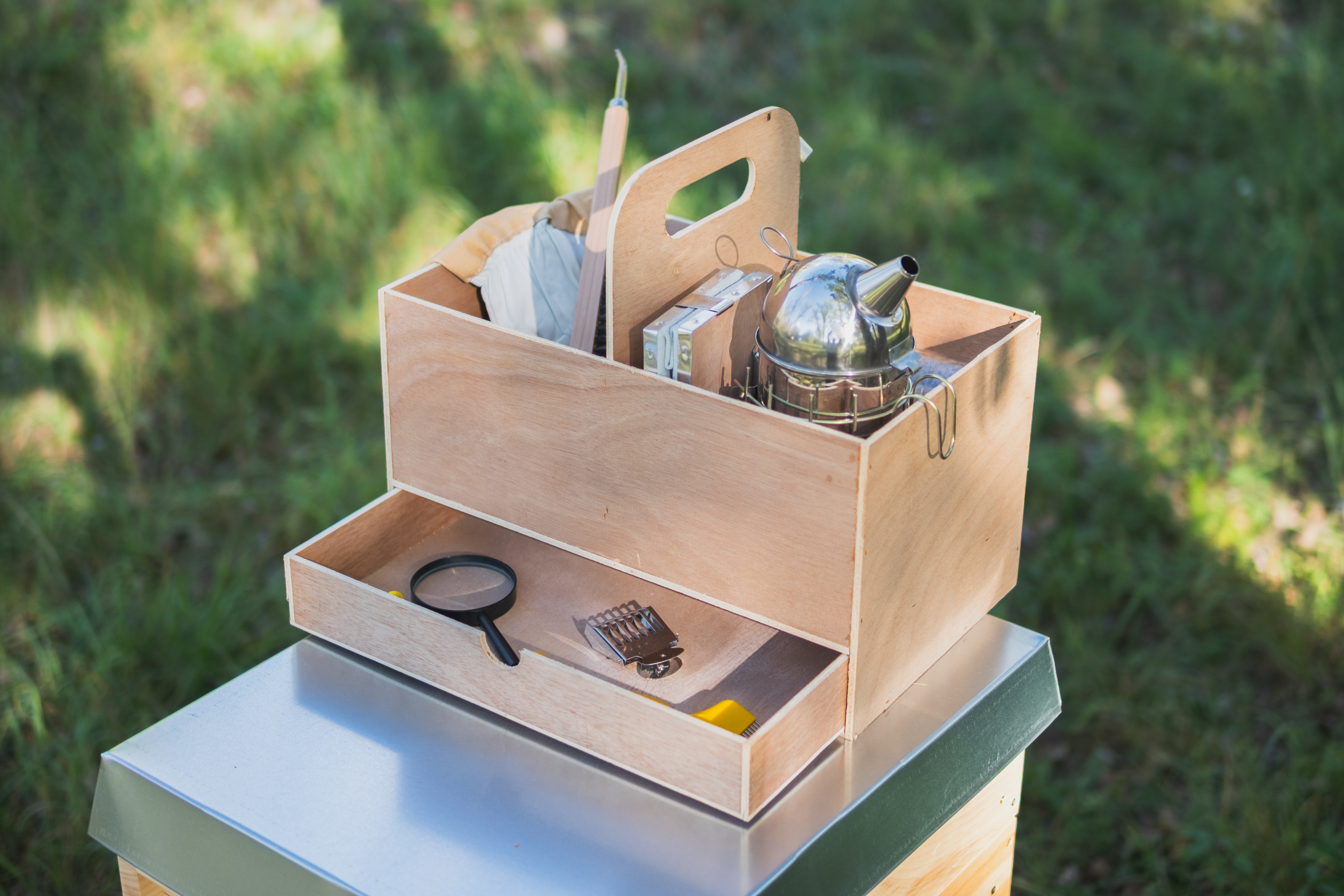 Diese Imker-Werkzeugkiste aus Holz sorgt für mehr Ordnung, Übersichtlichkeit und erleichtert die Arbeit am Bienenstand – Ihr gesamtes Imkerwerkzeug ist immer griffbereit.