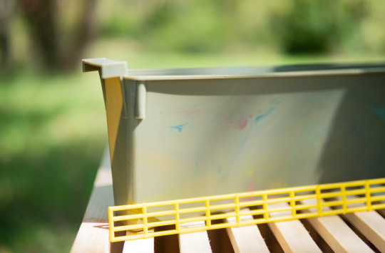 Im Preis ist bereits ein Kunststoffgitter (Schwimmer) enthalten, das verhindert, dass die Bienen im Futter ertrinken, und ihnen einen sicheren Zugang zur Zuckerlösung ermöglicht.