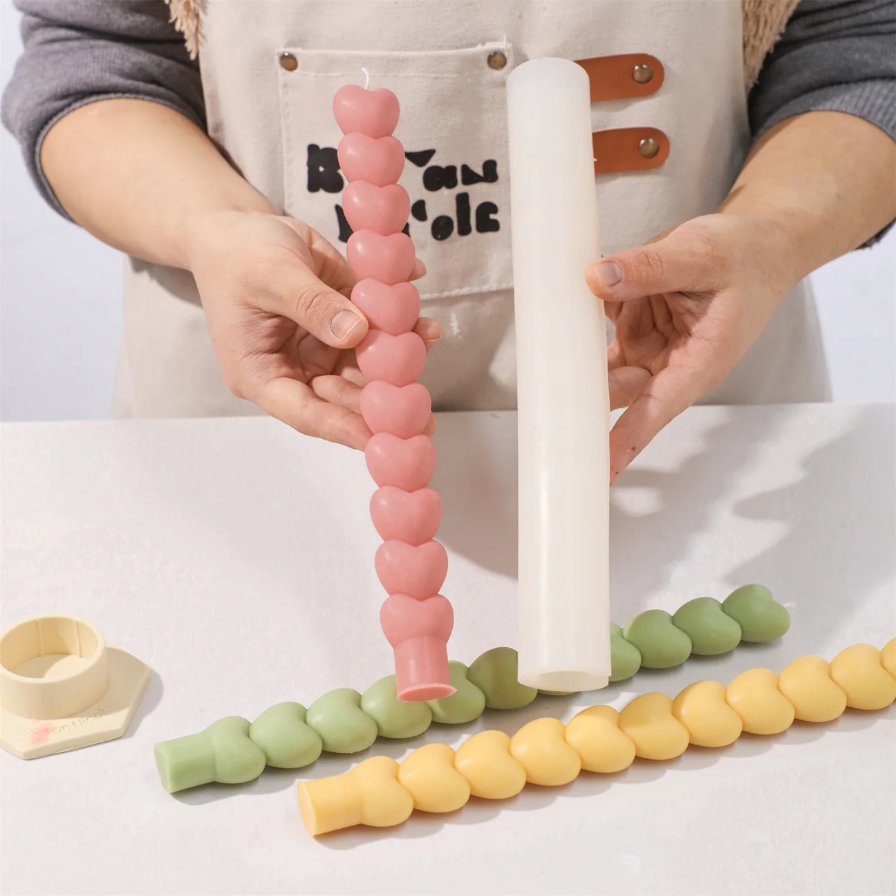 Premium Silikonform für Kerzen mit seitlichem Einschnitt, Kunststoffhülle, Gummibändern und Ständer – für maximale Stabilität beim Gießen und leichtes Entformen ohne Detailverlust. Aus Platinum-Food-Grade-Silikon, geeignet für Bienenwachs, Sojawachs und Paraffin.