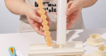 - Nach dem Aushärten Bänder lösen, aus dem Ständer nehmen, Seitenschnitt öffnen und Kerze vorsichtig entformen.